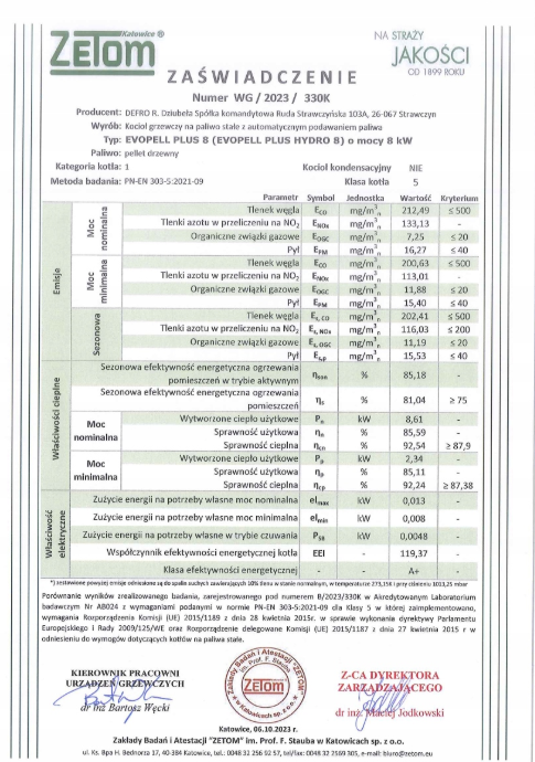 - certyfikat 5 klasy czystości spalin oraz Ecodesign, kocioł nadaje się do rozszerzonego dofinansowania z programu Czyste Powietrze