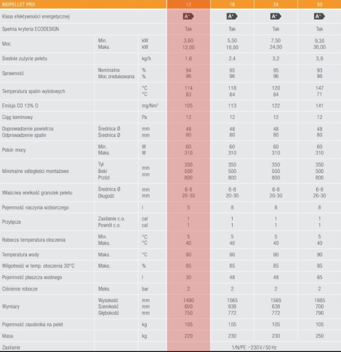 KOCIOŁ NA PELLET PIEC FERROLI BIOPELLET PRO 12 KW ZBIONIK 105 kg lista ZUM
