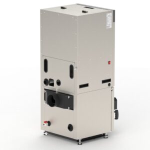 Piec dedykowany do ogrzewania pomieszczeń przemysłowych jak warsztat, hala produkcyjna, magazynowa lub domy jednorodzone, o estetycznym wyglądzie, dzięki wykonaniu przy pomocy wycinarek laserowych i pras krawędziowych CNC.